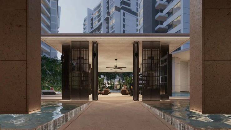 为了让景观更有层次感,项目打破社区封闭性,打造大面积园林景观,构建开放、生态的城市空间轴,将内部水系园林与外部城市、山林景观相连,让山海美景相互渗透。