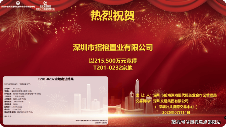 招商经过158轮竞价,在深圳公共资源交易中心以21.55亿,斩获了前海核心区桂湾北部一块mini的小三角新宅地-T201-0232宗地,溢价率86.1%,楼面价约8.4万,刷新了深圳涉宅土拍楼面价地王,记录至今未被打破。