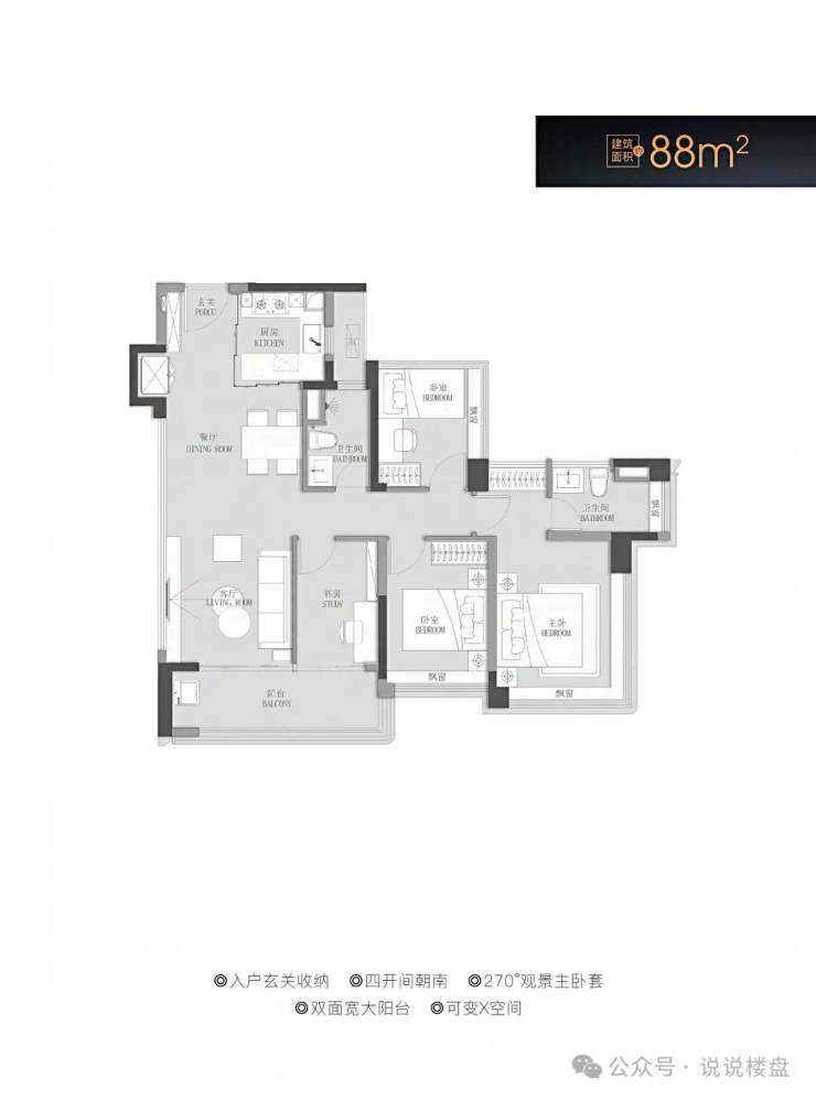 【全优产品】户户朝南,最高可达25%阳台赠送率,广州首个88方3+1四空间;