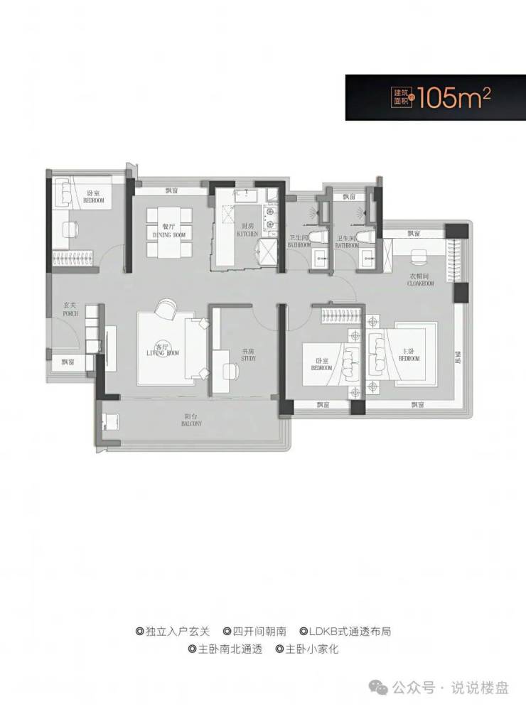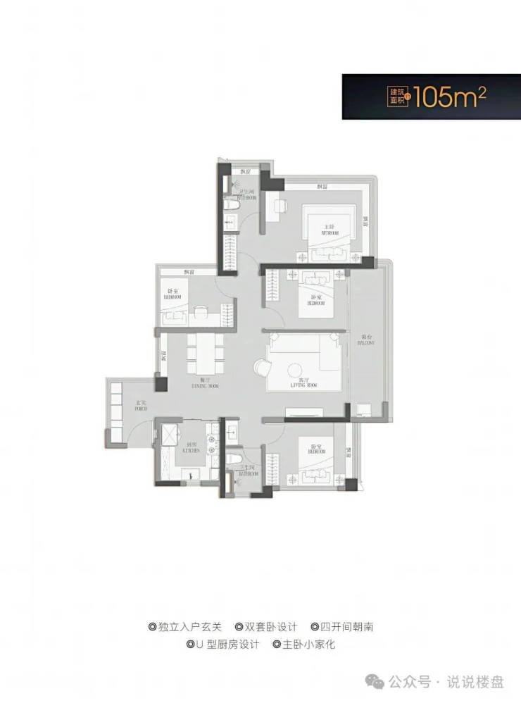 建面约88-105㎡百变四房
