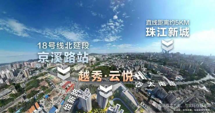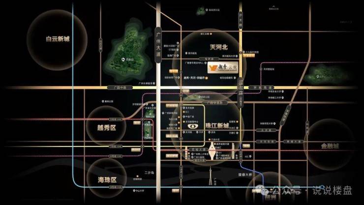 而越秀·云悦踏准中轴线,直线距离珠江新城仅5KM,未来仅2站即达,3站琶洲CBD。
