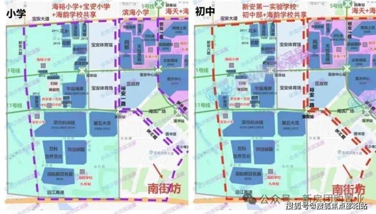 根据2025年宝安区教育局最新的学区划分,小学学区划分在海韵学校,海裕小学,宝安小学;中学学区划分在:新安中学第一实验学校,海韵学校。