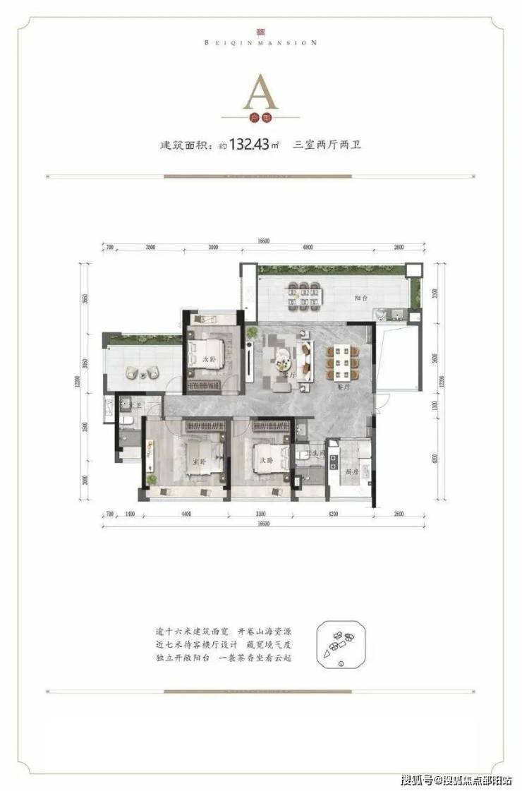 北秦华府主力户型逾16米建筑面宽,于世界湾心的寸土寸金的资源里,府藏奢阔天地;约4.2~6.8米横厅设计,逾9米奢阔观景阳台,于热带山海之间,体验生活悠然;甄选品牌精装,宽奢钢质子母入户门,LOW-E中空静音玻璃,无忧生活体验;社区布局健身步道、泳池、儿童乐园,为全年龄人群,提供运动、健身体验。〖户型鉴赏〗