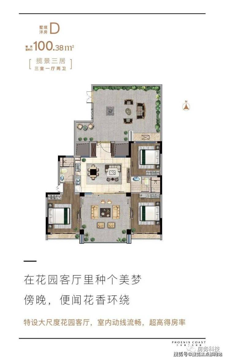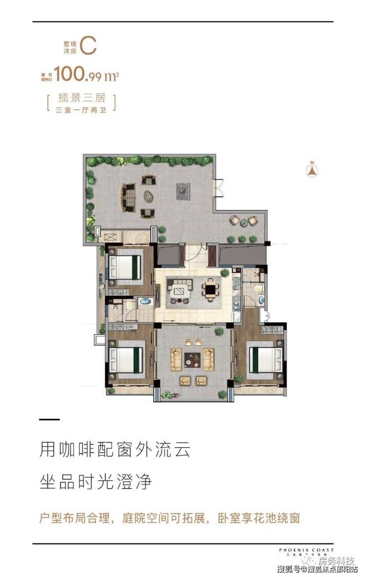 墅境洋房C户型 三房一厅两卫 建筑面积100.99㎡⛪翠屏凤凰海岸售楼处电话:4008736605☎开发商已认证🌇🌇