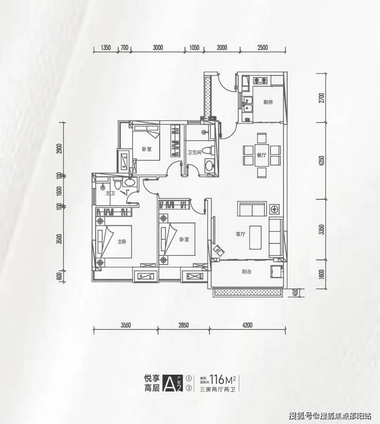 💎在售户型:建筑面积约99-100㎡三房两厅一卫、约116-119㎡三房两厅两卫