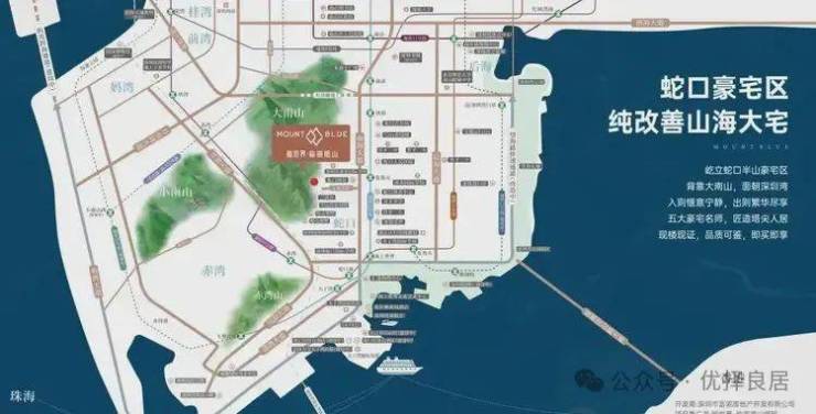 项目位于南山蛇口半山豪宅区,三面环山、正面瞰海,拥有丰富的城市配套、稀缺的山海资源。整体可谓是“入则静谧,出则繁华”,可享受山景资源,空气较为清爽,安静适合居家,社区北面有设置一个登山口,不过具体后续管理和品质如何,比较考验开发商的运营管理能力。