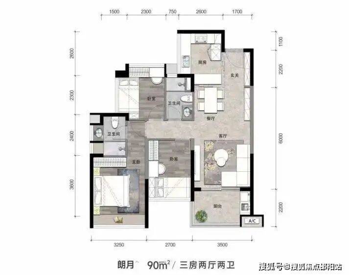 1、幸福三房,尺度宽阔有序,承载更多欢乐