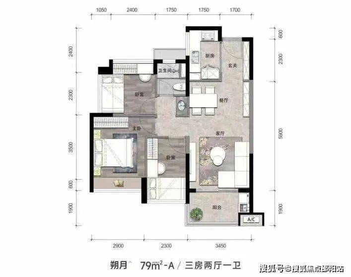 【朔月】79㎡竖厅,3房2厅1卫