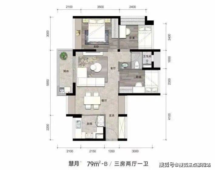 【慧月】79㎡横厅,3房2厅1卫