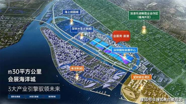 深圳城势向西、科创引擎驱动下,前海会展海洋城基于"国际会展中心+海洋新城+冰雪文旅"三大千亿级引擎,通过加强超级工程的功能复合性和流量叠加效应,着力构建集全球会展总部集群、世界级文旅名片、国际会客厅、湾区海洋门户为一体的明日之城典范。