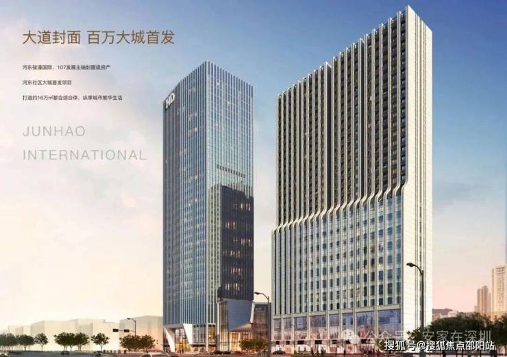 🏠 河东社区首发项目——河东骏濠国际,位于河东社区北区,总建面约16万㎡,汇聚商务公寓、办公、住宅、商业等于一体,多重复合业态共融,打造107国道封面都会综合体。