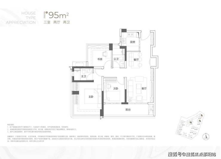 东南或西南朝向以及西北朝向,有3种户型格局,但整体差异并不大,都是横厅设计,阳台也都非常宽敞。主要核心区别是阳台的设计,这应该是为了贴合楼栋朝向、景观所做的调整。