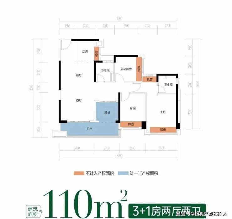 主卧双飘窗+次卧等面宽飘窗,全赠送高拓空间
