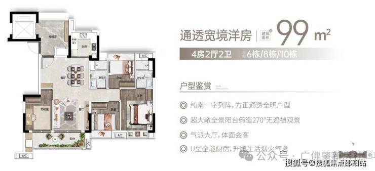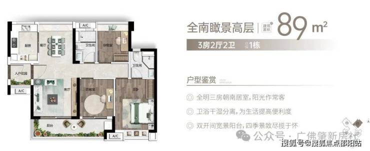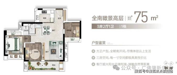 全南大阳台,挥洒阳光与清风。建面约75-114㎡光感洋房,户型设计全朝南开间,动静分离,方正实用,大尺度双联阳台,采光通风更佳,肆意挥洒阳光和清风。
