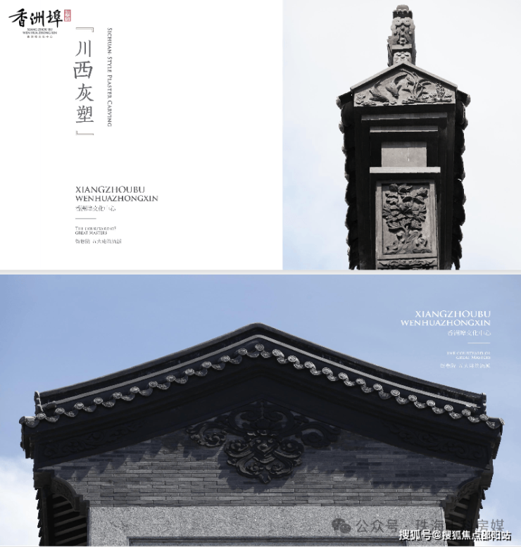 4⃣灰雕:香洲埠灰雕图案均出自四川都江堰名匠之手,这正是修复大慈寺、杜甫草堂、武侯祠的老匠人班组,是中国乃至国际最具盛名的灰雕传承之人。