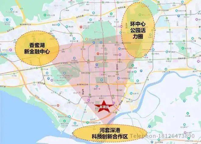 福田汇聚了行政、文化、金融、交通、会展、购物、酒店、公园与住宅九大核心配套设施,呈现出多元化的城市生活体验。项目地处河套深港科技创新合作区、香蜜湖新金融中心和环中心公园活力圈这“三大新引擎”的交汇点,位于其三角地带的中心位置,尽享丰富的规划与资源优势,未来发展潜力巨大。