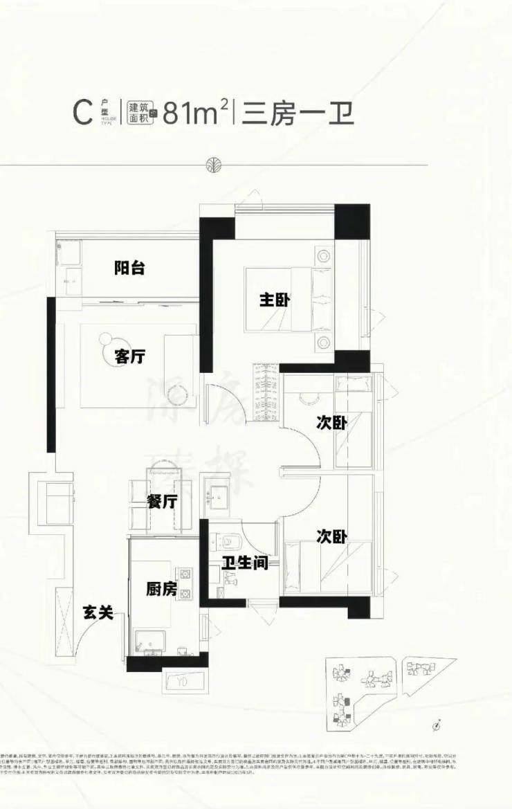 81㎡的3房2厅1卫,C户型,设计的是竖厅格局,客厅实测3.21米开间,LDKB一体化,S墙设计预留冰箱卡槽位,动静分区,3个卧室分别做到了主卧11㎡/次卧5.6㎡/次卧4.71㎡(去掉墙体,实测面积),L型厨房,卫生间三段式分离,西南或东北朝向。