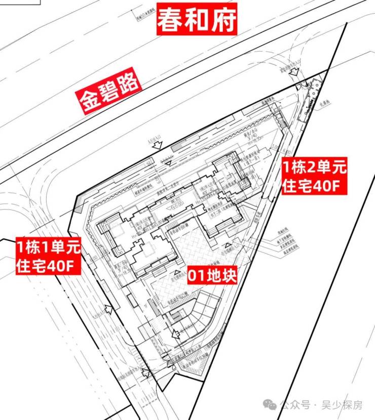 01地块:总占地面积约0.51万㎡,总建筑面积约5万㎡,计容建筑面积约3.42万㎡,容积率6.32,绿化率30%,共由2栋40层住宅组成,分别是1栋1/2单元,商业面积3100㎡。