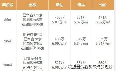 推售产品:85-98-100㎡3房(使用率约80%)