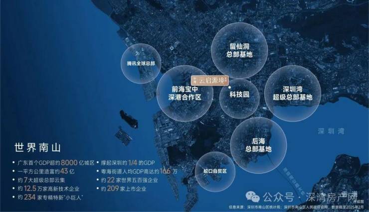 深圳南山,中国 GDP 强区,上市企业密度全国第一,企业总数超 40 万家,规划2035将建成具有全球影响力的典范区。项目所在科技园芯,横向连接前海合作区与深超总,纵轴连接留仙洞总部基地与后海总部基地,形成一核四区的发展骨架,驱动城市核心发展,吸引大量产业、人才聚集。