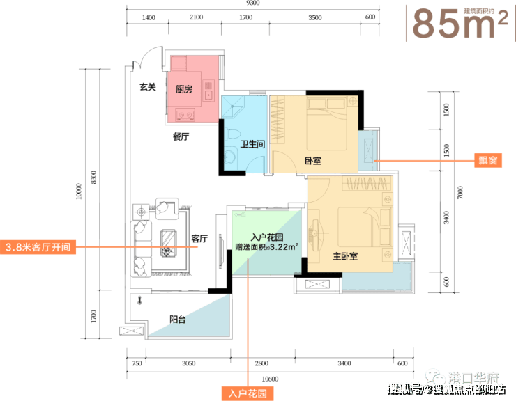 建面约85㎡高拓三房