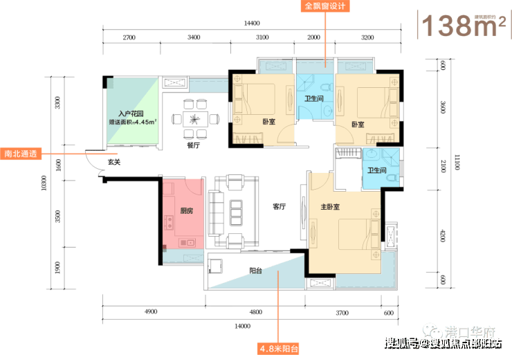 户型南北通透,采光、通风、视野俱佳。