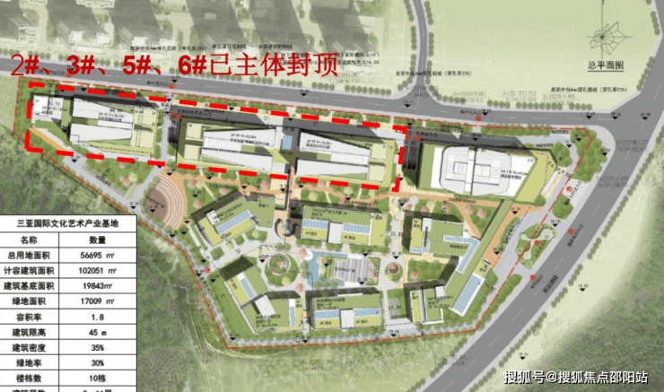 项目总用地面积56695.26㎡,总建筑面积约17万㎡,容积率1.8,建筑限高45米,建筑密度35%,绿地率33%,停车位1052个。