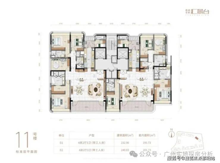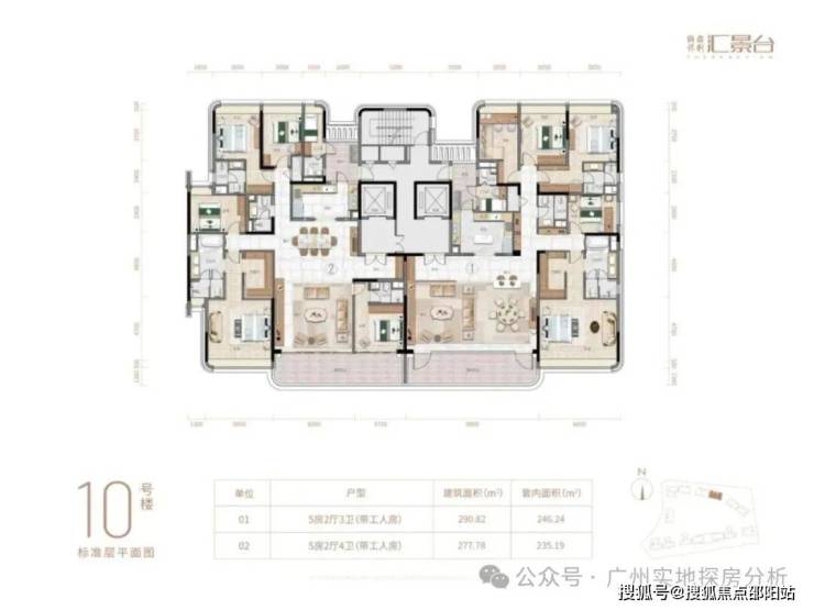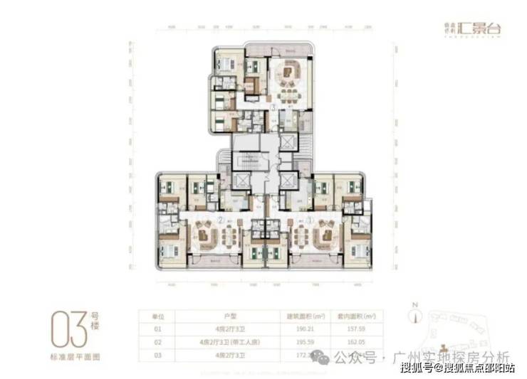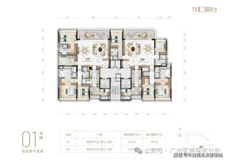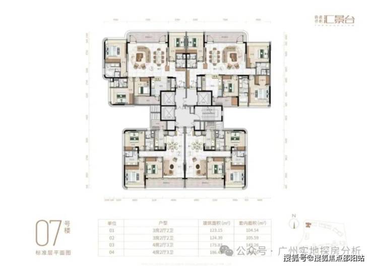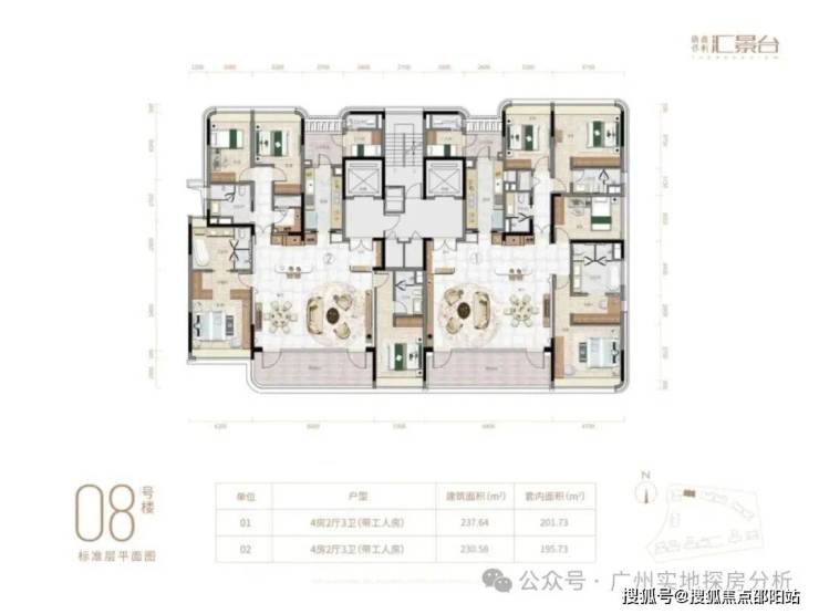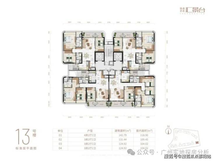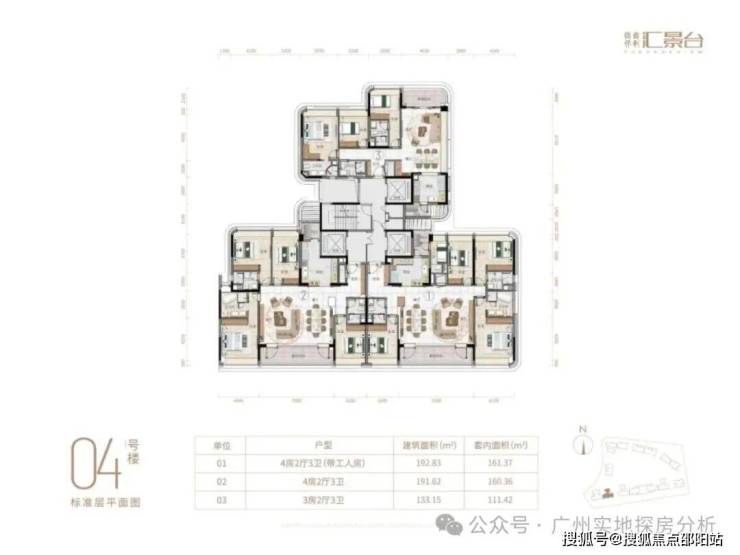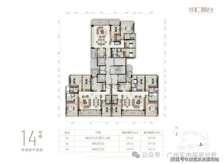 项目由14栋12层小高层组成,涵盖123-352㎡三至五房,共8类户型。