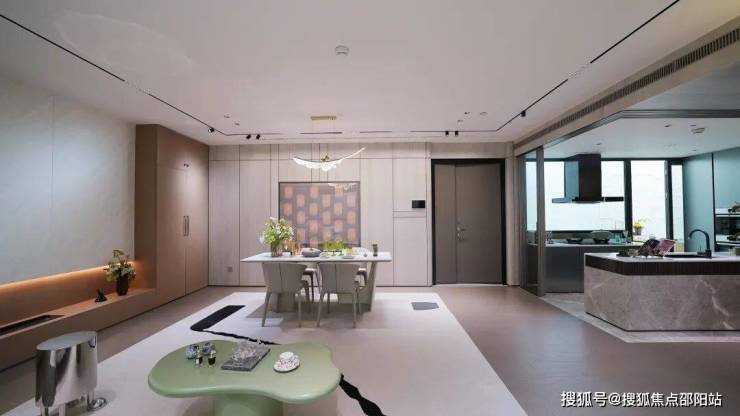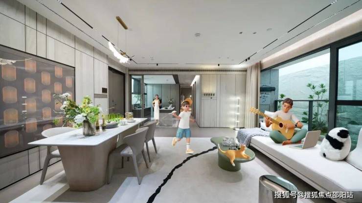🧙海越云瀚府售楼中心电话:400-835-9190☎24小时预约热线🧙🧙【官方已认证】一进玄关,中轴为庭,串起厨房、餐厅、客厅及阳台,构成一个家庭交流的超级广域公区。约40㎡超大方厅样板间实景图