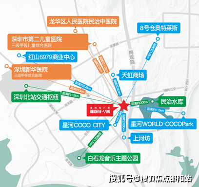 地铁-地铁线路密集: 1站深圳北,2站福田。4/5/6/21(规划中)/22(在建中)号线,5条地铁环绕;项目距离4号线白石龙站直线距离约600m,便捷通达;