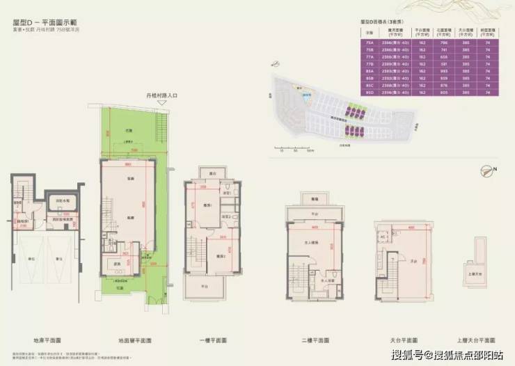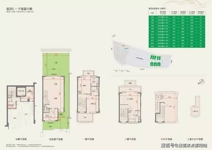 而屋则方面共划分为7种款式:包括A至E型、总裁屋及主席屋。当中总裁屋、主席屋属于董事屋类别,各只得1伙,均设有室内升降机。