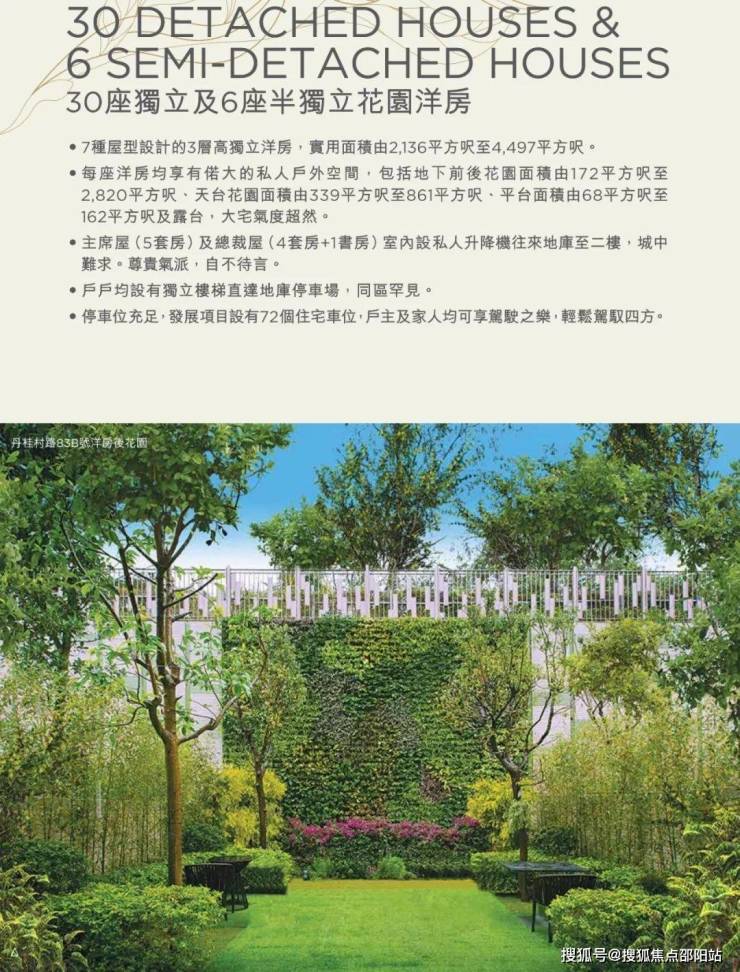 每幢洋房设有独立门牌,并有独立楼梯直达地库停车场。同时户户配置平台 (实用面积由68至162平方呎)、前后花园 (实用面积由172至 2,820平方呎)、天台花园 (实用面积由339至861平方呎)及梯屋 (实用面积由40至79平方呎)。