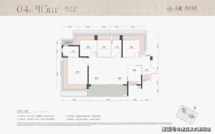 3. 建面约115㎡ 4房2厅2卫(横厅)