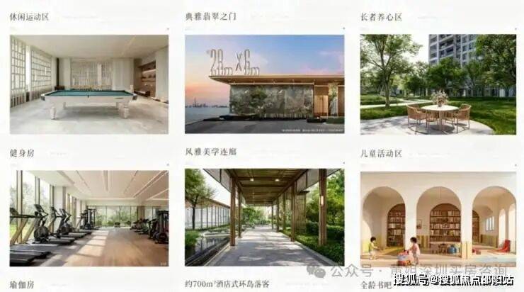 社区内规划双泳池(其中成人泳池有标准泳道)、健身房、私宴厅瑜伽室、全龄书吧等多元空间,成为长者的茶室、孩子的乐园、书迷的小角落、运动达人的主场等高端配套。建筑之间设风雨连廊,提升生活便利性。