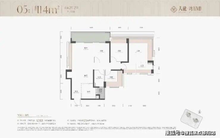 • 亮点:客厅3.7米开间,连接次卧出6.4米长大阳台。主卧带270°环绕飘窗,套内实得面积约115㎡,实得率102%。适合追求竖厅实用性的家庭。