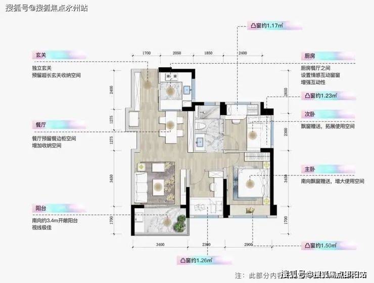【建面约78㎡三房两厅一卫】全南向稀缺户型,采光极佳,全屋极致功能化场景设计,预留最大化收纳空间,整体户型方正实用,多飘窗利用;实用率为80%,极致收纳空间,灵动情感互动窗设计,3.4米宽景阳台,特设VIP专属冰箱位,wifi中心,匠心构建舒适暖心的家。