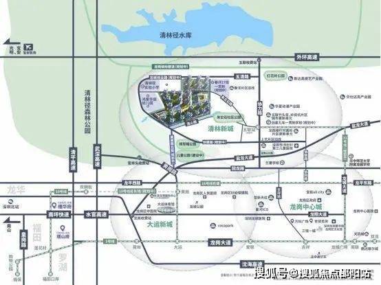 清林新城,作为龙岗区重要“支点”联动“产学研”一体发展,以高端装备制造、生物电子、纳米技术等新兴产业为发展方向,构建“一核、二带、三板块、多节点”的城市总体空间布局,打造绿色智造新城;