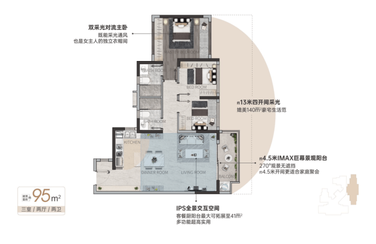 神户型2⃣ 95房4.5米超大客厅三房两卫
