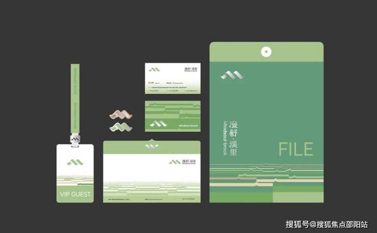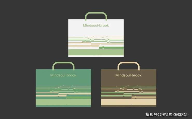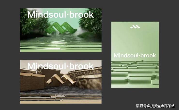 于是我们选取了“m”与“三点水”为图形logo的主元素:其中“m”是体现品牌中英名称mindsoul与漫man的品牌基因,而“三点水”是体现三溪+漫舒的水文化基因。视觉上,我们以书写毛笔的笔触艺术来塑造字母m,且侧看是三点水笔画,这与苏曼殊画作的中西融合理念相通,具有独特视觉个性与文创气质内涵,这正透露出苏曼殊浪漫主义的创作风格。同时具有细节的笔锋也像是飘逸潇洒的姿态,以及自然意境的枝叶羽翼联想,透露了漫舒·溪里的潇洒轻文旅的定位。
