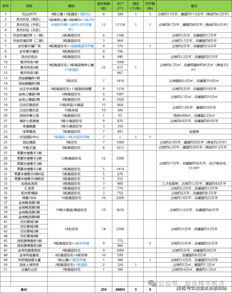 255栋住宅➕9栋办公➕7+学校➕1医院
