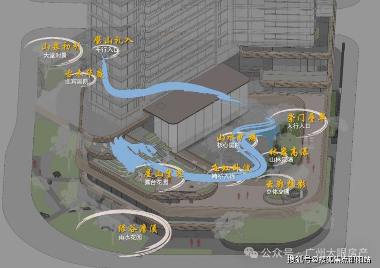 第一,给业主“永远新鲜的探秘感”,不同层次的林泉、瀑布、溪流、花木,穿插其间,造型立体,错落有致。