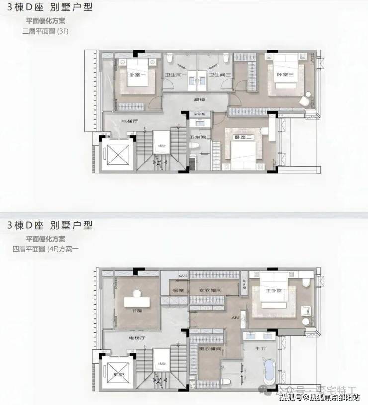 【约280㎡4+1房4卫】双梯入户,独立电梯厅,阔绰横厅直连阳台,三面舒适采光,主次卧双套房,270°环幕视野,还有独立家政套间,西南朝向看城市景观,高层可看深圳湾海景;