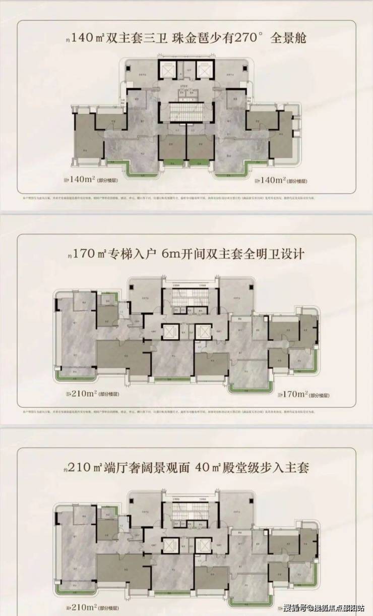 140、170、210平三个面积的户型图: