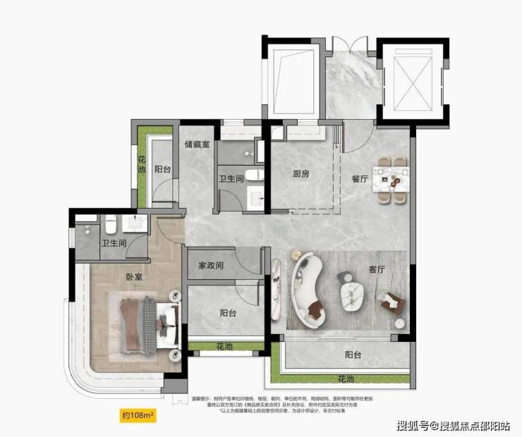“宽幕视野” 南北通透双视野,主卧270°转角飘窗