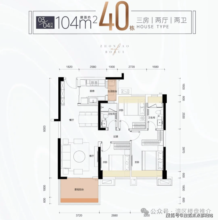 户型面积:40 / 41栋 104㎡(朝南) 118㎡(南北)