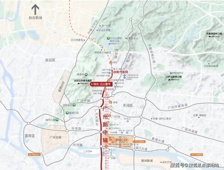 项目雄踞广州千年历史名山、国家级5A风景区-白云山主峰东麓,紧挨荷树林登山口,生态资源不可复得。云山东麓定位为生态宜居新城区,相比西麓更近天河,显现出“以东为贵”的姿态。