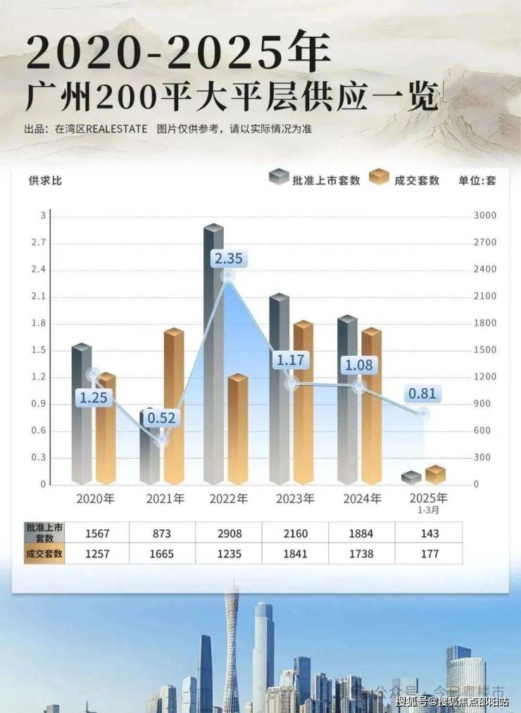 据统计,广州约200㎡以上大平层项目,已超30+个,稀缺性大打折扣。不止数量上严重“超发”,供求比更是直线上升,内卷竞争,愈演愈烈↓