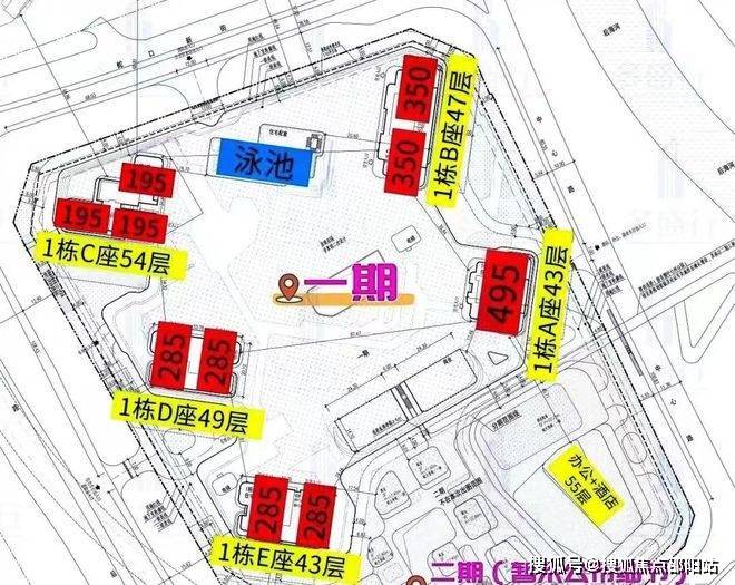 楼层高:43-54层 限高161-192米