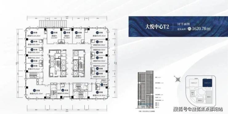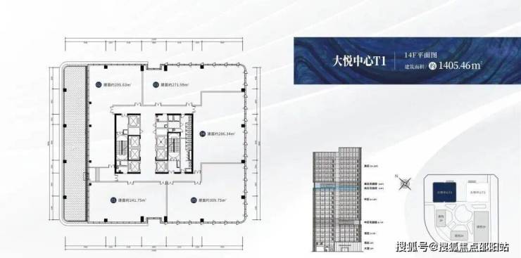 【楼栋概况】:🔍大悦中心T1,城市之光,高度88米,共20层,总建筑面积约3万㎡,在售户型建面约:267-316㎡,6梯6户,标准层高约4.2米。