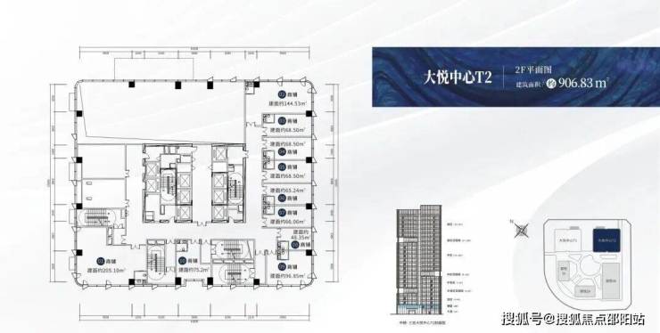 大悦中心T2,创梦之翼,高度100米,共23层,总建筑面积约3.5万㎡,其中2-4F为商业写字楼。